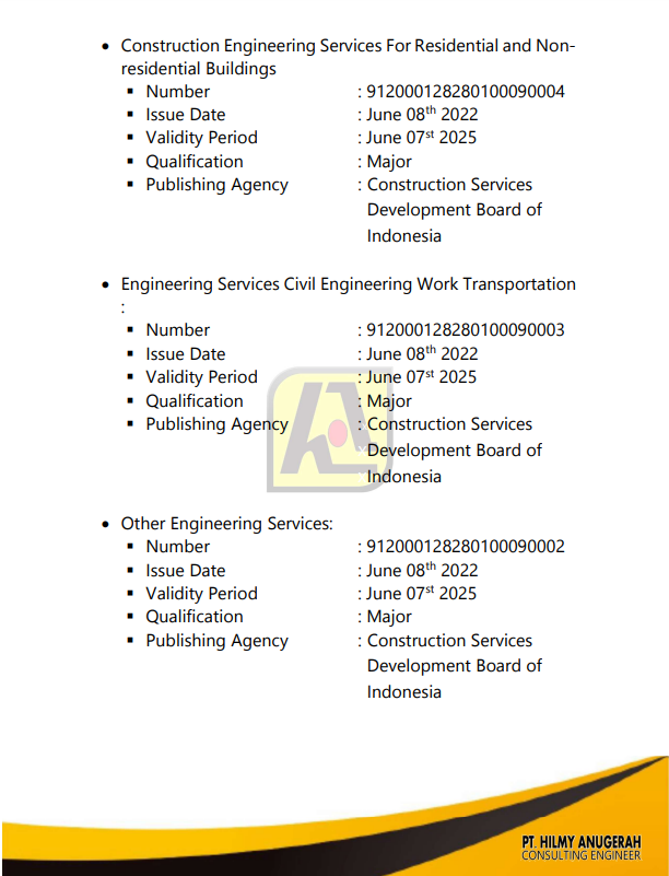 In providing consulting services for government and private agencies, currently PT. HILMY ANUGERAH is supported by a permanent workforce of more than 20 experts with high quality and experience in their respective fields.